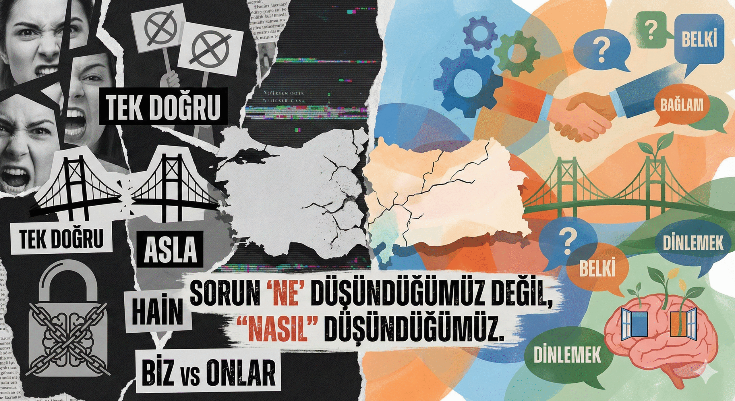 Türkiye’de herhangi bir haber kanalını açtığınızda, X’teki “Gündemdekiler” sekmesine baktığınızda veya gergin bir aile yemeğinde masanın ortasına siyaset düştüğünde hissettiğiniz o duygu tanıdık mı? Hani sanki iki farklı gezegenin insanları konuşuyor gibidir. Kelimeler aynıdır ama anlamlar çarpışır.